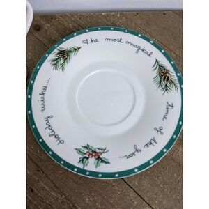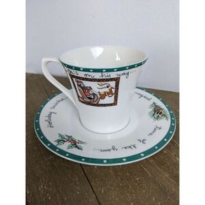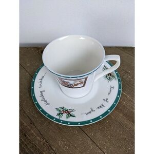 Mikasa Ultima mug and saucer plate in Christmas Wish pattern  Excellent condition. 6.5" x 3"