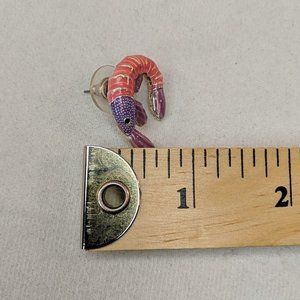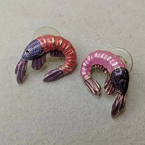 MJ Signed RARE VINTAGE Pink Shrimp Earrings Enamel Studs Purple EXCELLENT COND!