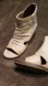 MJUS Ankle Leather Booties Open-Toe Wedge Heel / EU39 = US8.5 - 9 / Beige, Olive