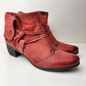 MJUS \ Chunky Heel Genuine Leather Booties w/ Foldover Detail Red Sz 8 US Eur 39
