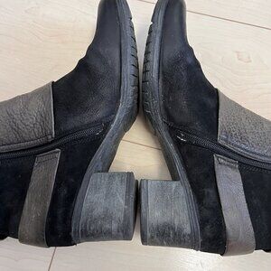 MJUS Knee High Black Suede Boots With Grey Harness Detail Sz 40