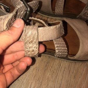 Mjus Taurus Fisherman Beige Leather Strappy Snake Print Sandals w Buckes Sz