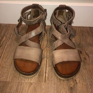 MJUS Taurus Fisherman Beige Leather Strappy Snake Print Sandals w Buckes Sz 5.5