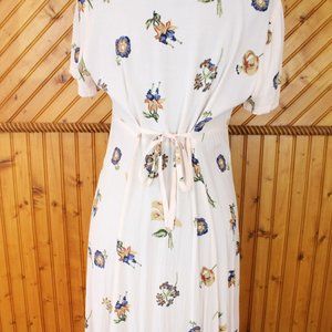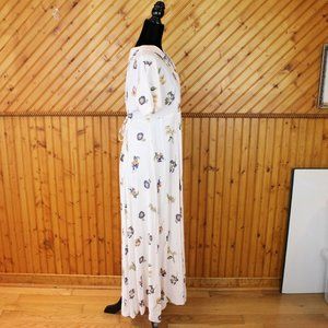 MJW Studio Maxi Shirt Dress Beige Floral Size 7/8 Short Sleeve Collared Half D98