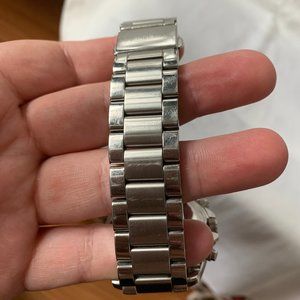 The MK5165 Ladies watch has a brushed stainless steel link bracelet.