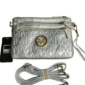 MKF Crossbody women silver purse,gold metal ,rhinestone event,bridal,prom