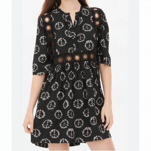 M/L Sandro 100% Silk Peace and Flowers Mini Dress