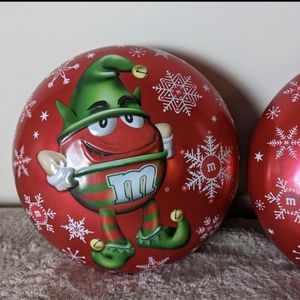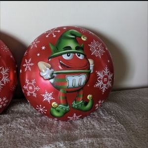 M&M Christmas Tins for serving candy or put as part of your Christmas display/decoration. Good condition 9/10. Minor scratches on 1 tin and dents all pictured. Measurements in photo. Total of 2 tins.