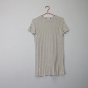 Keywords: M.M.LaFleur, T-Shirt Dress, Knit Dress, Ribbed Dress, Casual Dress, Beige Dress, Short Sleeve Dress, Comfortable Dress, Work Dress, Business Casual, Minimalist Dress, XS Dress, Cotton Dress