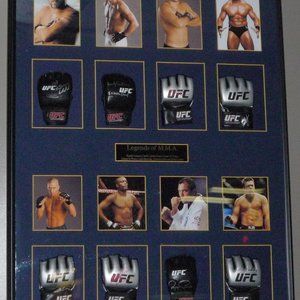 Serious collectors! Massively huge, framed shadow box picture 41" X 57" X 5" deep. Collector's item for Man Cave with everything or for a sports bar. Couture, Liddell, Gracie, Penn, St. Pierre, Machida, Silva, & Lesner. Photographs and signed glove of each fighter. Bought at the Playboy Mansion during a FIGHT NIGHT EVENT in 2010