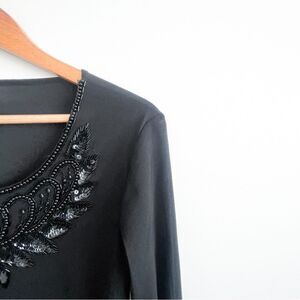 M&MA Sweater Beaded Sequined Black Top Blouse Women's S Long Sleeved