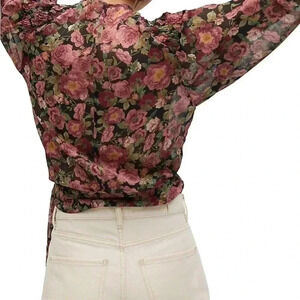 [M]MNG Pink/Red Floral Cropped Baloon Sleeve Wrap Blouse