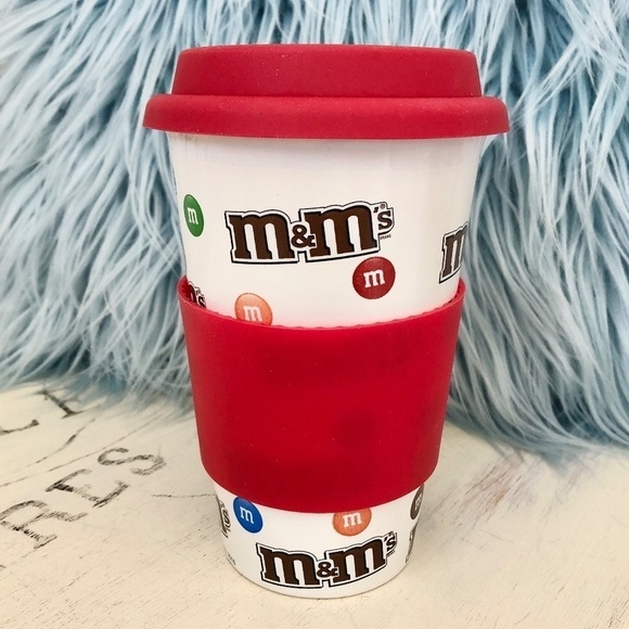 M&M's, Candy, 2016 Ceramic Travel Mug, With Silicon Lid & Holder, Nice Condition