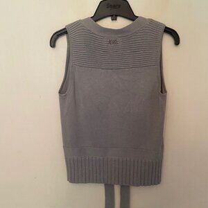 SWEATER KNIT VEST - SLEEVELESS, DEEP V-NECK FRONT WITH BTTN CLOSURE AND SELF TIE AT FRONT WAIST