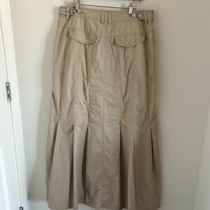 MNG (Mango) Vintage Khaki Maxi Skirt Front and Back Pockets Pleated Back Sz 12