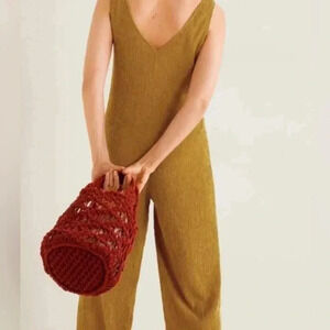 MNG Mango Textured Long Jumpsuit Mustard Size Medium