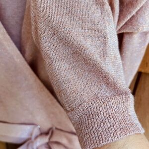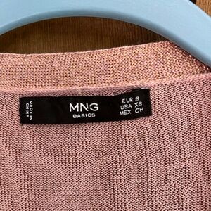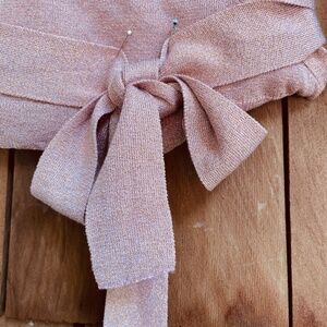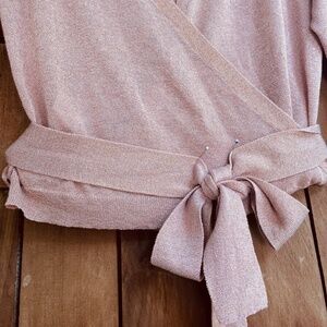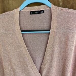 MNG Wrap Long Waist Tie 3/4 Sleeve Light Pink Metallic Jersey Top Blouse XS