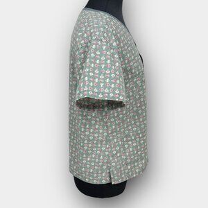 MOBB Womens Mock Wrap V Neck Scrub Top Green Print Short Sleeve S/M P