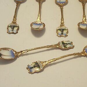 6 collectible Moscow cold-colored decorative spoons, 5 inches long.