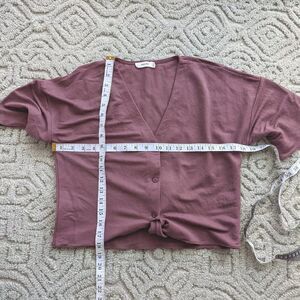 MOD REF Tie Front Button Down Crop Top mauve earthy tone Small @F1
