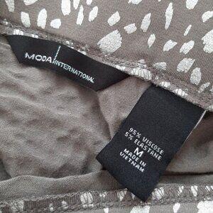 MODA INTERNATIONAL | Ruched Exposed Zip Mini Skirt Grey Silver Animal Print Sz M