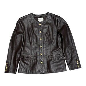 MODA SPIEGEL Genuine Leather Vintage 90s Retro Brown Jacket Womens 8 Medium