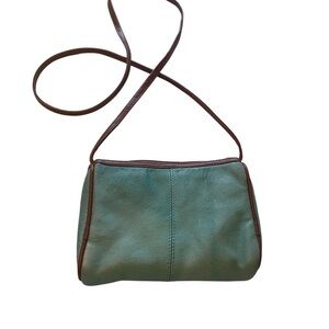 MODA Turquoise Blue LeatherCrossOver Purse-Zipper Closure-Side Pocket-Long Strap
