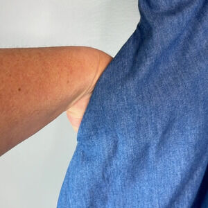 MODCLOTH Chambray Ruffled Mini Skirt Blue Medium Wash Pockets Cotton Plus 4X