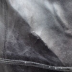 In pre loved condition, the leather is starting to crack and peel in a few places, see pictures and video. There are also 2 tiny white spots at the armpits.