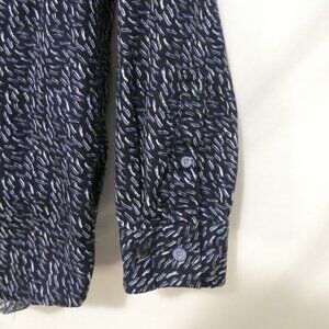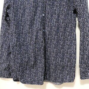Elevate your wardrobe with this stylish long-sleeve shirt, featuring a unique abstract pattern in dark blue tones
