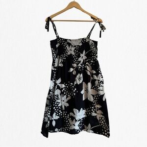 MODERN Black & Taupe Floral Sheered Bodice Sundress With Tied Straps Lar…