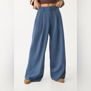 Chic wide-leg pants in a deep blue shade. Perfect for a modern look. These pants are beyond flattering and look great for an office look or afternoon out with a pair of runners!