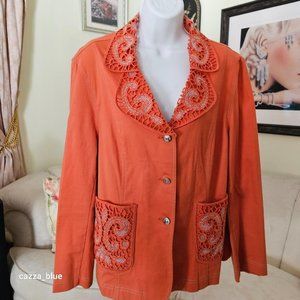 MOFFI International Vintage Tailored Women's Plus Size Orange Denim Jacket