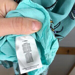 Dress is lined with arm ruffles, colourful leaves print, in great condition.