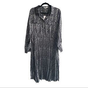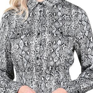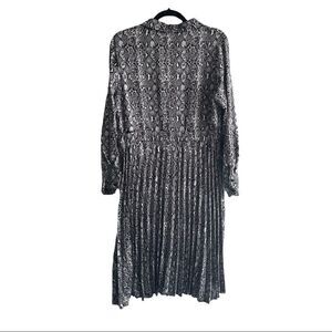 MOLLY BRACKEN Snake Print Long Sleeve Shirt Midi Dress Pleated Black Grey L