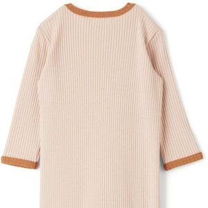 Long sleeve stretch organic cotton-blend jersey bodysuit in pink. Trim in tan throughout.