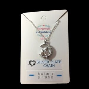 **Please note** the chain is silver plated, it is not solid sterling. In the event that the chain tarnishes, its original luster can be brought back with a quick dip in jewelry cleaner for silver.