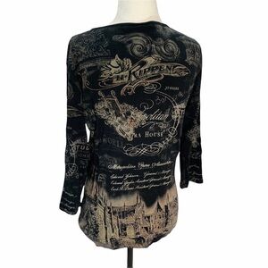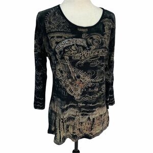 MONA Lisa🖤Graphic Black 3/4 Sleeve Scoop Neck T-Shirt Top