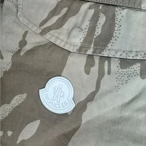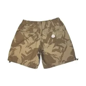 DETAILS: Cotton twill shorts in khaki featuring camouflage pattern throughout. Mid-rise. Four-pocket styling. Drawstring at elasticized waistband. Rubberized logo patch in white at back pocket. Bungee-style drawstring at cuffs. Zip fly. Logo-engraved silver-tone hardware.Supplier color: Khaki