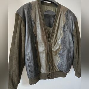 MONDO UOMO VINTAGE Leather And Wool Cardigan Style Jacket in Green/ Navy.Small