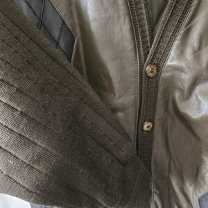 Mondo Uomo is an Italian brand specializing in leather garments, particularly jackets with mixed materials like knit and suede.
