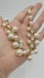 Gold tone chain and the stones are multi-faceted for super sparkle, the pearls are a champagne white.