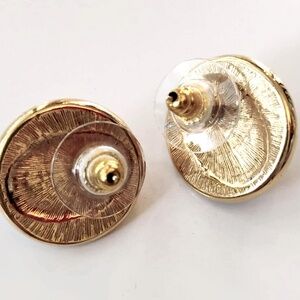 Embellishments: Gold Tone Plating, Pearl White cabochons, Clear rhinestones, Oval shaped Earrings.