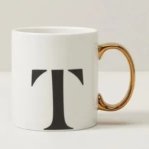 A glam gold handle and a graphic art déco initial makes our holiday monogram mug an elegant gift for everyone on your list. Crafted from durable glazed porcelain with a glossy finish, it’s a beautiful way to savour a coffee, tea, or cocoa year-round. Microwave-safe. Handwash only.