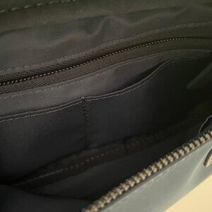 Spacious zippered main compartment with one interior zip pocket and three sleeve pockets