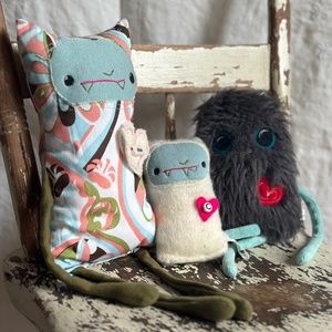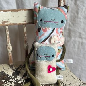 Sweet little cuddly big Monster Doll "Shine" with attached little Monster Doll initial "C" in EUC (Charcoal fuzzy Monster in second image NOT INCLUDED, she just jumped into the picture unannounced... ;)