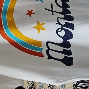 Show your love for Montana, or just wear the vibe. Crisp white body with Navy ringer neckline and sleeve trim