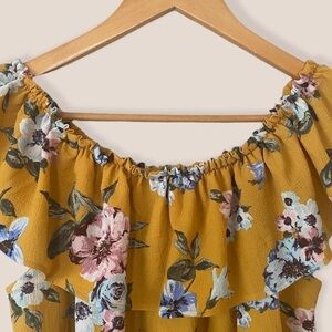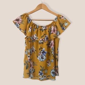 Adorable and lightweight floral off-the-shoulder top with flutter “sleeves”. Excellent pre-loved condition. Size M.