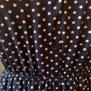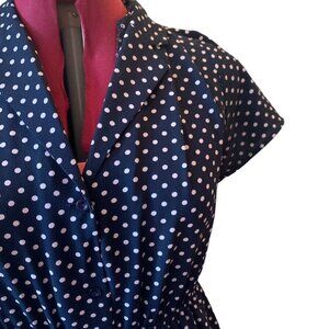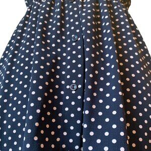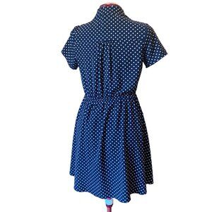 MONTEAU - Polka Dot Button Up Dress Navy Blue short sleeves - medium