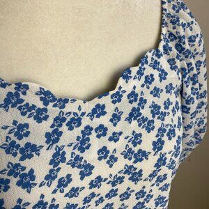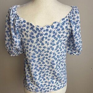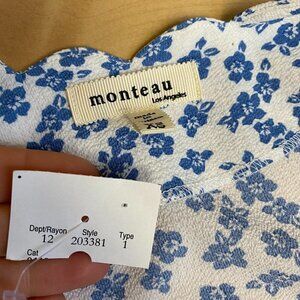 MONTEAU Top New XSmall Blue Flowers BNWT Scalloped